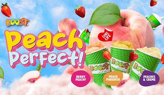 It’s going to be Peach Perfect with our newest drinks 🍑 Get your Boost fix now! 🤩